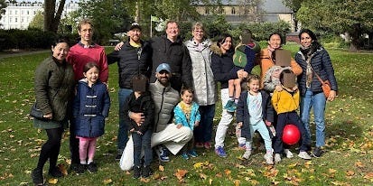 By the next Sunday, Lilian had reached London, but so had Storm Amy. The wind flung fallen leaves in a barrage across our gathering, blanketing our picnic mats from one direction and then the other. We had to raise our voices to be heard over its howls. At one point a two-metre long branch fell from one of the tall trees and landed a few metres away; it was verdant with leaves and so springy that the boys took turns jumping on its curved arc it like a one-dimensional trampoline. Meanwhile, I received a text saying the Royal Parks had all been closed.